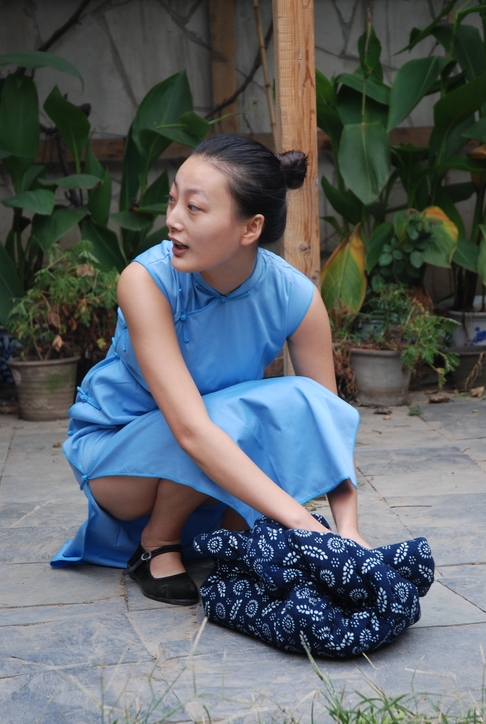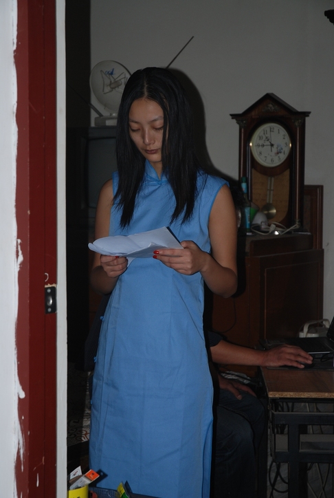 李丹涂好红指甲油,像往常打扮成一副城里小姐的模样,又想这次下乡天冷,与农民打交道老是这样一身打扮不好,她拿出一件蓝花大襟衣包上文件走出了门。
