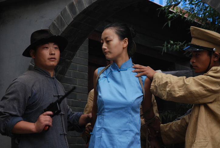 李丹不畏强暴奋力拼搏,刘秉钧用枪指着李丹,“女共党,放老实点。”