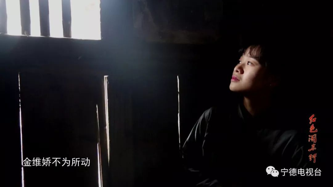 “革命的春风吹进这福鼎的小山村–高滩村,村里一位年轻的家庭妇女也因此逐渐成为一名革命战士,她就是金维娇。红军在高滩村附近作战,金维娇就以农家妇女的身份为掩护,动员乡亲们筹款筹粮,赶制军衣草鞋,支援红军部队。”