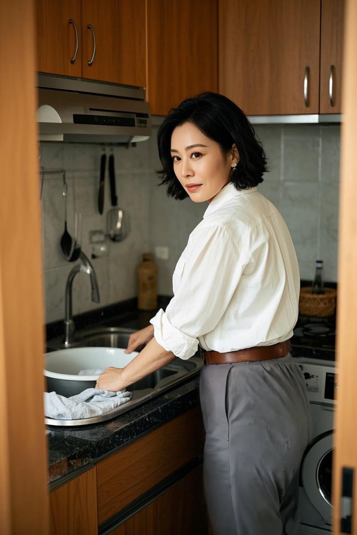 我老婆深知她的戎装形象对我的吸引,也经常把一些女红军,女八路,女解放军,女游击队长之类的演出服装带回家让我欣赏,高兴起来她甚至愿意穿着这些戏服洗衣做饭,这可让我乐不可支。