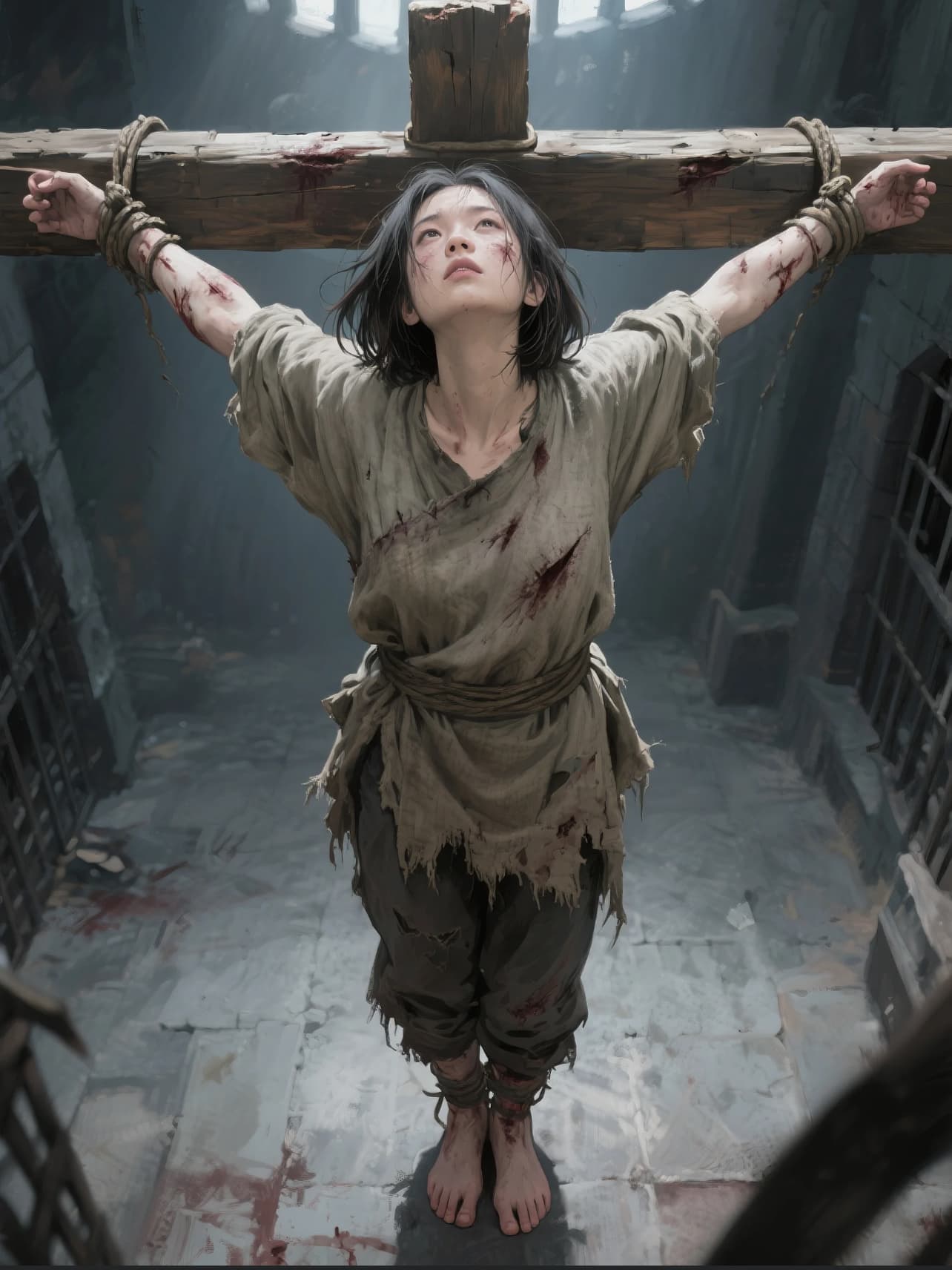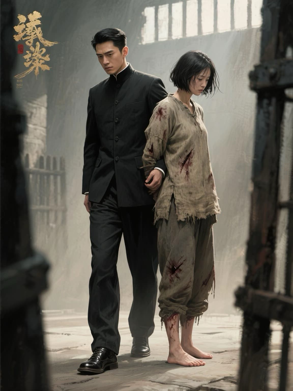铁门在身后轰然闭合,腐锈气息裹着彻骨的冷扑面而来。楚亦的靴跟磕在石板上,每一步都重得像砸在胸腔里——直到视线撞上墙面那团“破布”,呼吸猛地加重一些。
