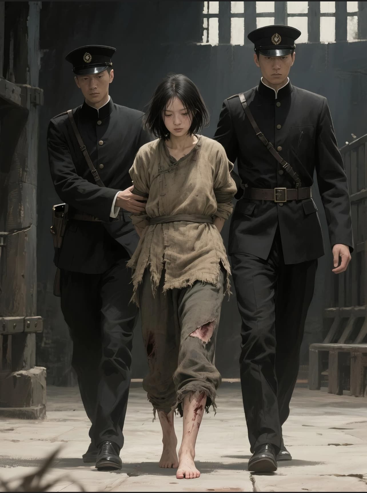 刑途.押送途中,刑讯室铁门开启的瞬间,铁锈味混着血腥味扑面而来。日伪警察的皮靴踏碎地牢的死寂,沈岚赤脚拖出斑驳血痕。她垂眸敛去眼底的光——不是屈服,是把信仰咬碎了咽进骨血:每寸拖沓的步伐里,都埋着比刑具更坚硬的意志 。