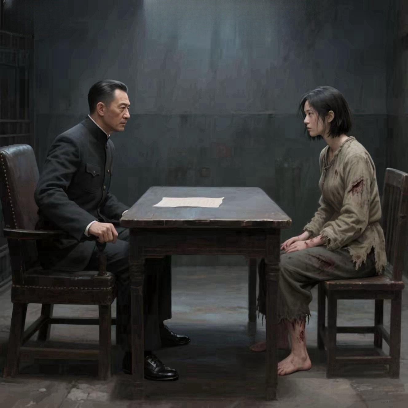 韩增明韩处长决定亲自下场审讯沈岚,地牢昏暗,他身着笔挺制服端坐,而沈岚浑身血污、赤脚而立,这一场是不对等的交锋,却撕开皮肉见了真章。