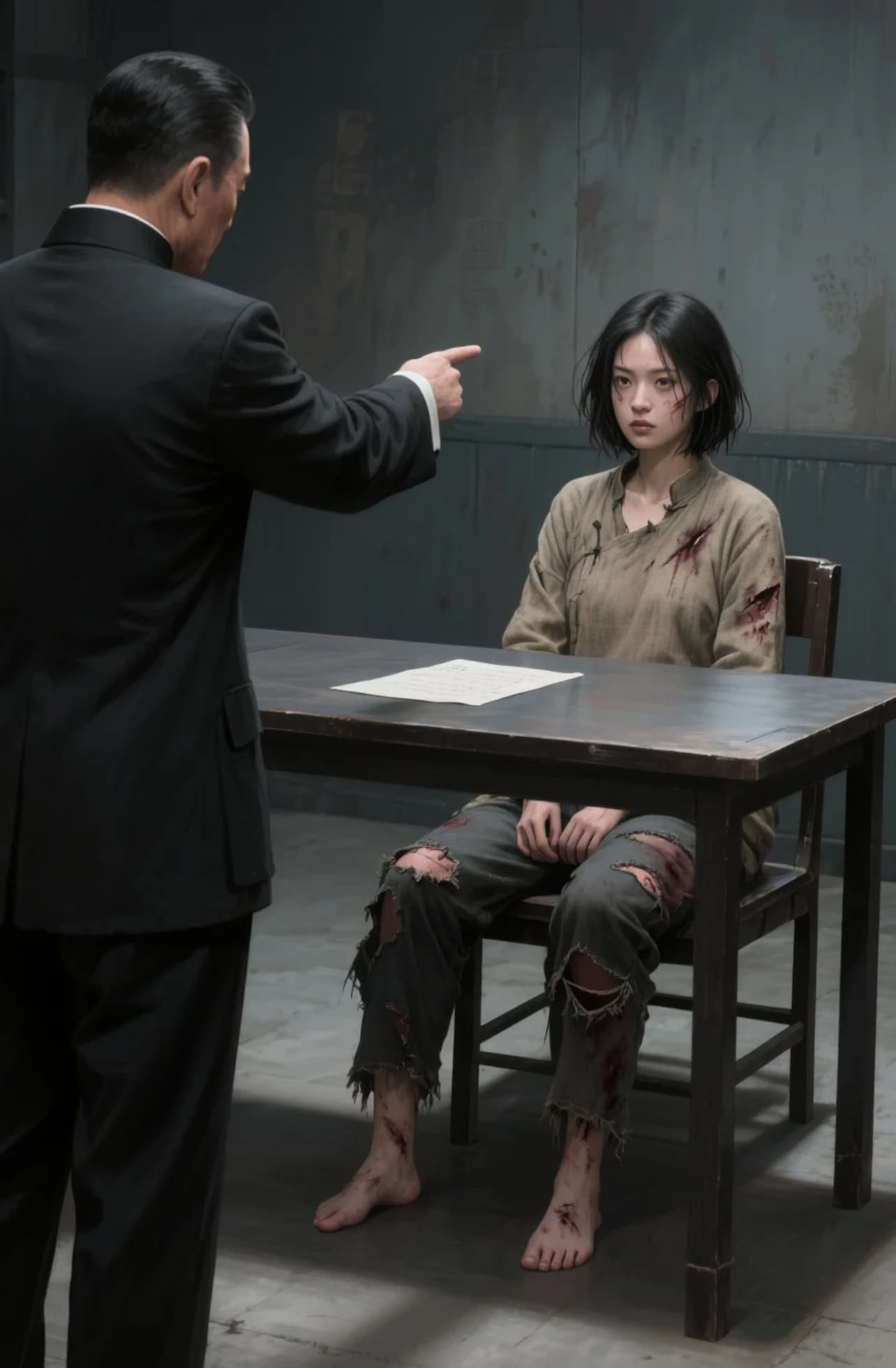 刑讯室的光像生锈的刀片,割裂在沈岚遍体的伤痕上。韩增明踱步到被缚的沈岚面前,她浑身血痕,却仍挺着脊梁。韩增明语气带着伪善的惋惜:“沈小姐,你看看你现在……这又是何苦呢?我们本可以不必这样的。”