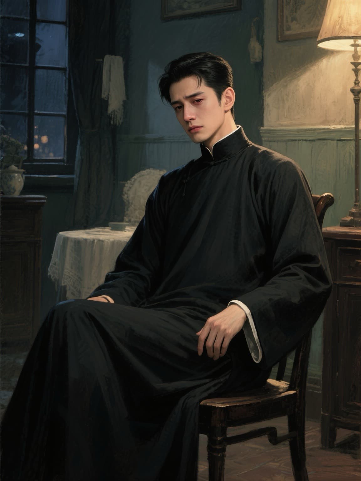 角落的阴影——楚亦半浸在黑暗里攥紧拳,看着受折磨的人,心像被铁钳绞着,却只能隐在黑暗中,强压着翻涌的情绪。