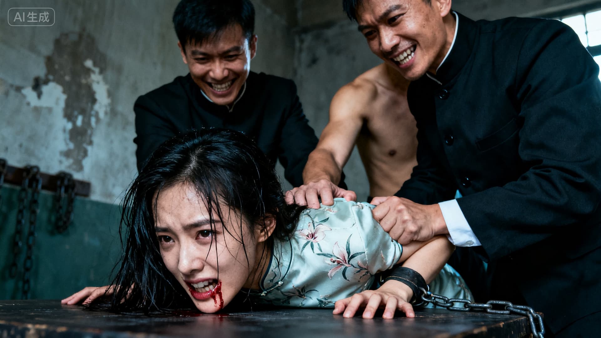 76号审讯室的灯光昏黄摇曳,映照着墙上那些形状诡异、颜色深暗的污渍,空气里弥漫着电糊皮肉的焦臭、一种更陈旧的、洗刷不去的血腥与绝望混合的气味,还有一丝若有若无的、让她胃部痉挛的、属于男人污浊体液的气息。