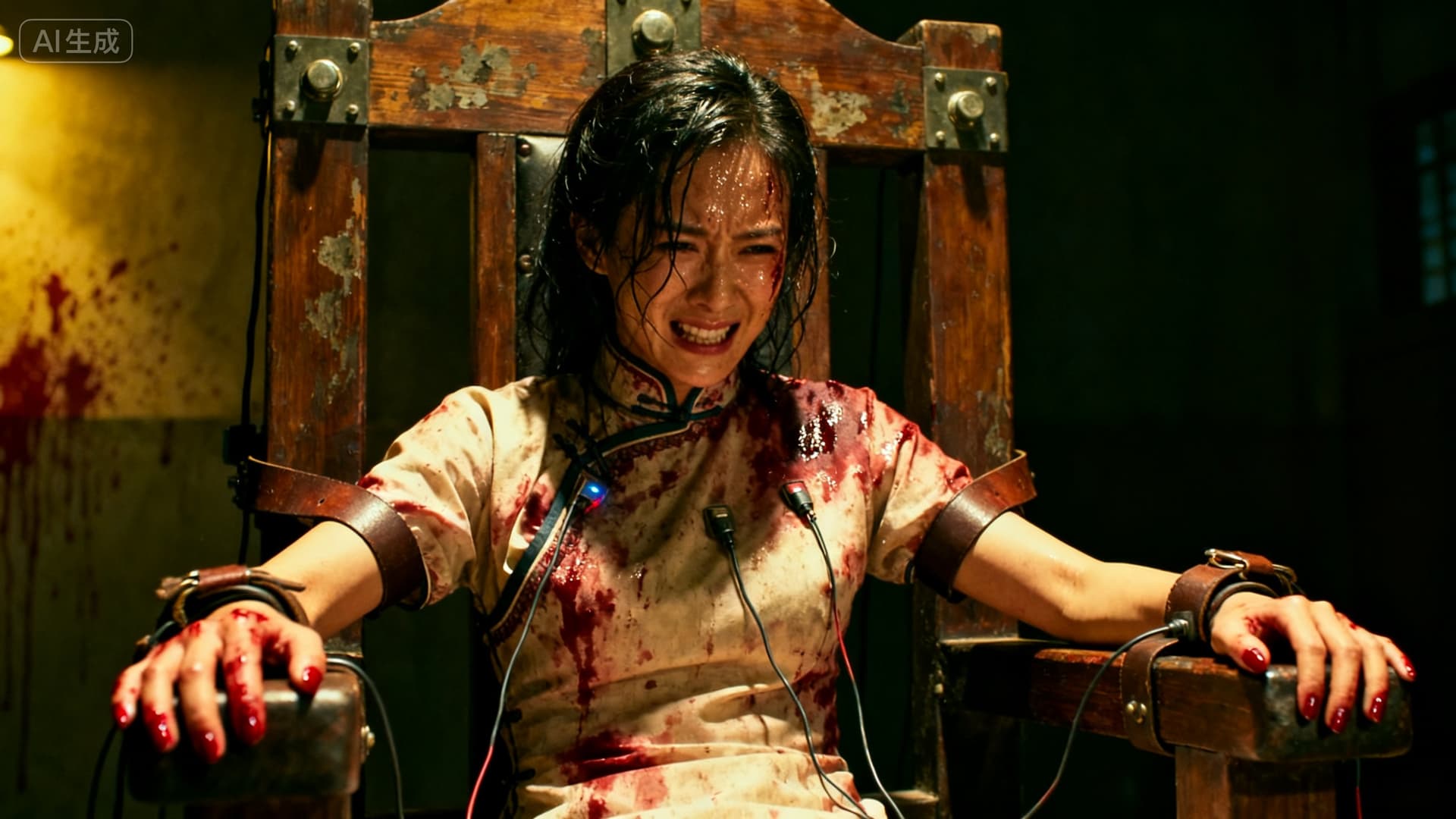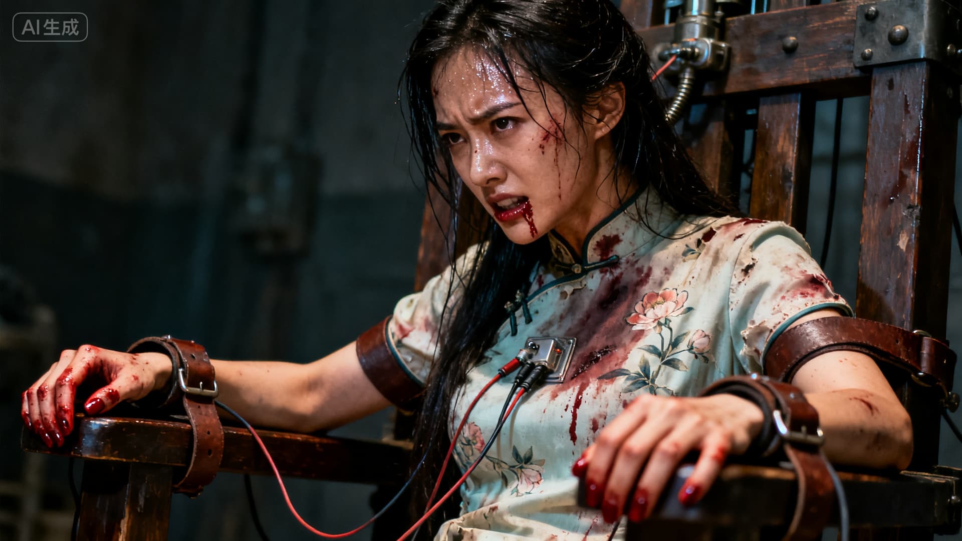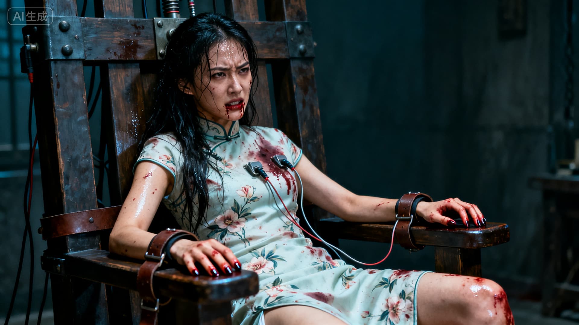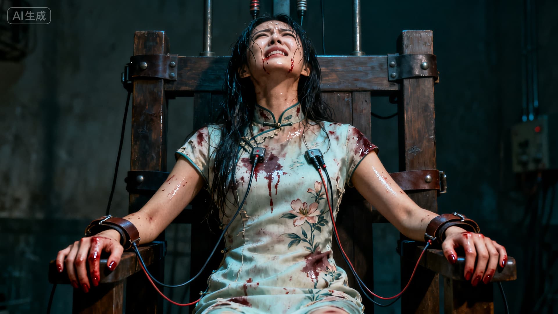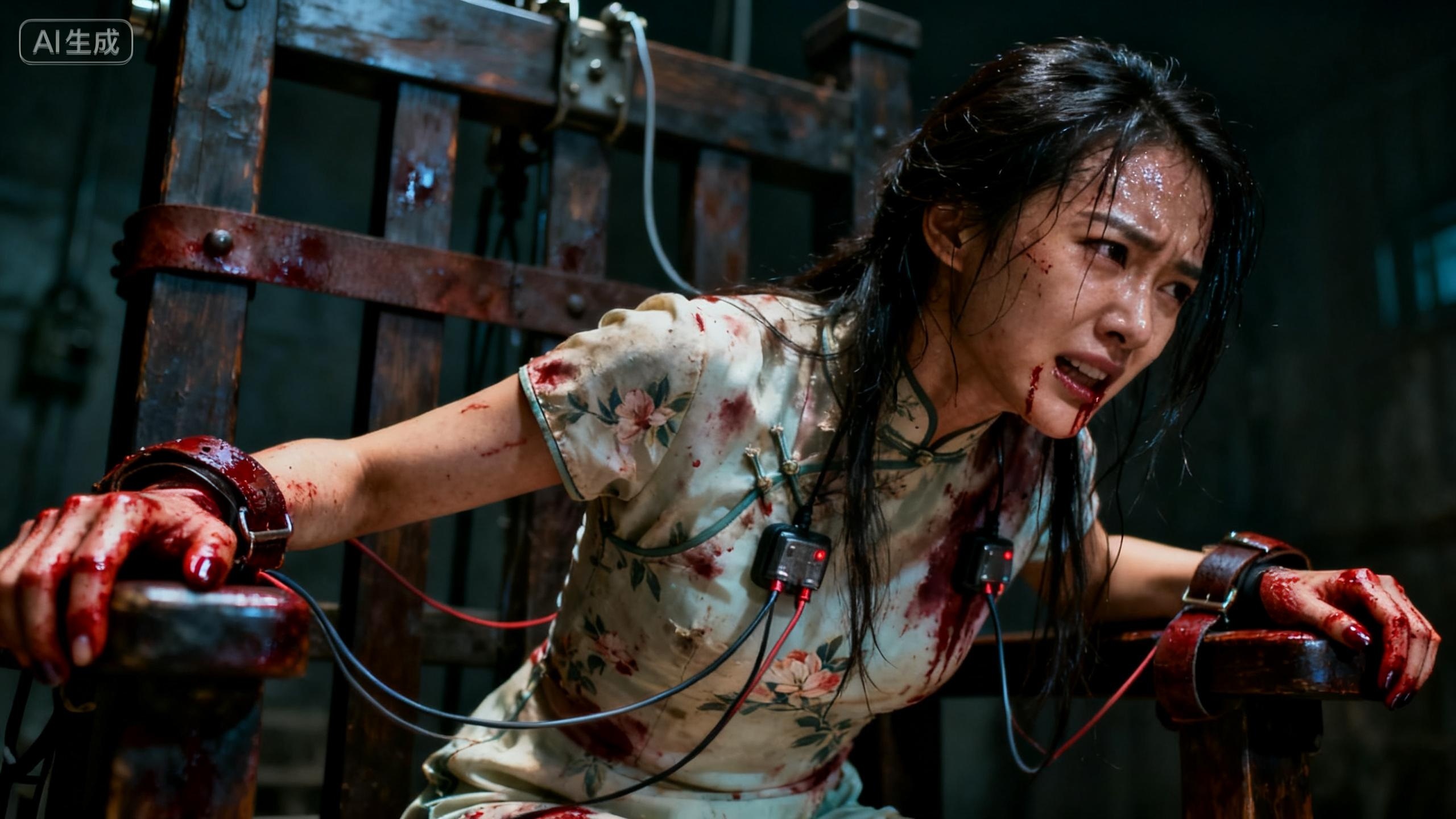 束缚着她的皮带深深勒进早已血肉模糊的手腕。每一次抽搐,都牵扯到下身隐秘而撕裂般的疼痛,那是比电击更为屈辱的创伤。