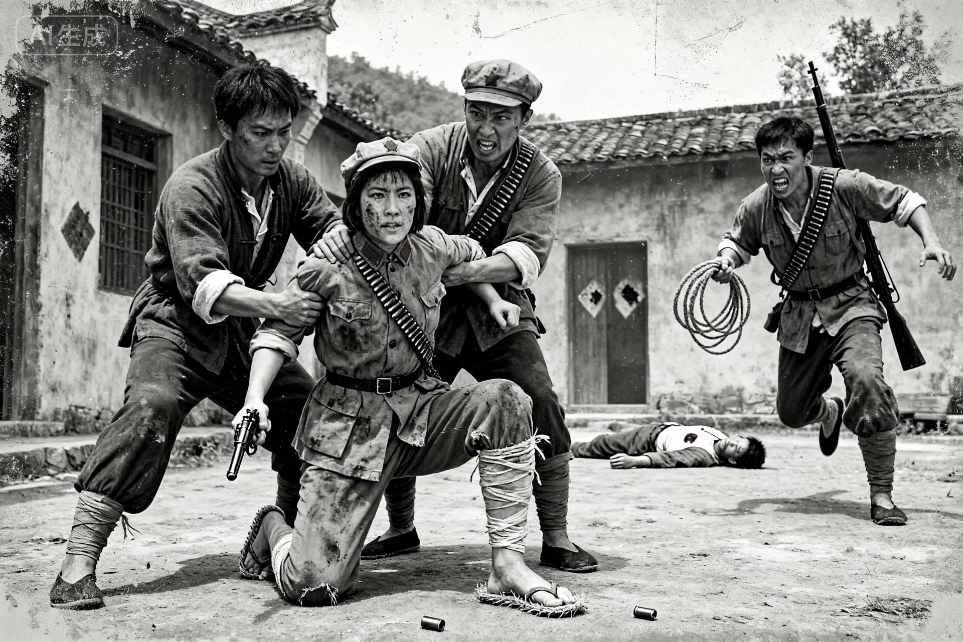 之前画的女红军被俘场景,对人物面容和画质做了修改,更像老电影。